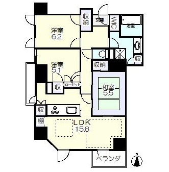 | 構造 | 鉄筋コンクリート造 | 間取り詳細 | 3LDK LDK15.8帖 洋室6.2帖 洋室5.1帖 和室5.5帖 |