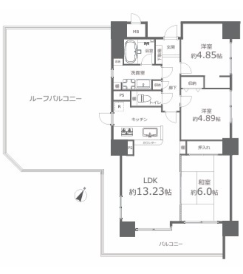 | 構造 | 鉄骨鉄筋コンクリート造 | 間取り詳細 | 3LDK LDK13.2帖 洋室4.8帖 洋室4.8帖 和室6.0帖 |