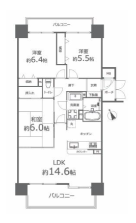 | 構造 | 鉄骨鉄筋コンクリート造 | 間取り詳細 | 3LDK LDK14.6帖 洋室6.4帖 洋室5.5帖 和室6.0帖 |